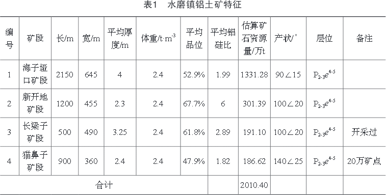 (2)圈定找礦靶區(qū)面積15km2,開展了1∶10000專項(xiàng)地質(zhì)填圖及槽探工作,初步估算4個(gè)礦段礦石資源量2010萬t(表1),具有發(fā)現(xiàn)大型鋁土礦的潛力。目前,1∶10000專項(xiàng)地質(zhì)填圖及槽探工作正在進(jìn)行中。