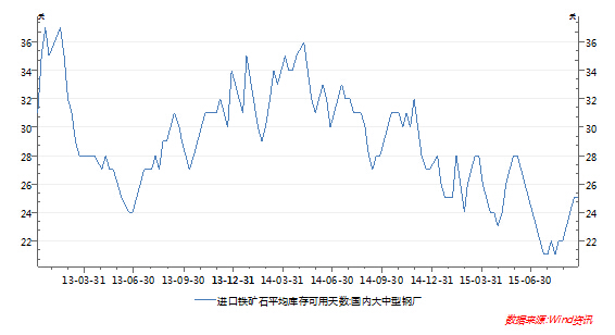 圖八 國內(nèi)大中型鋼廠鐵礦石庫存可用天數(shù)