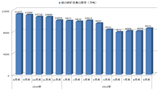 根據(jù)中鋼協(xié)統(tǒng)計,9月末,國內(nèi)26家重點企業(yè)鐵礦石庫存為2386萬噸,環(huán)比上升3.93%;全國進(jìn)口鐵礦石港口庫存量8552萬噸,環(huán)比上升6.12%。1-8月份,全國生鐵產(chǎn)量同比減少1537萬噸,而鐵礦石進(jìn)口量同比僅減少120萬噸,遠(yuǎn)小于生鐵產(chǎn)量降幅,鐵礦石市場仍是供大于求局面(圖七)。