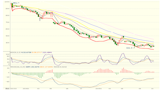 7.技術(shù)分析顯示,I1605在360的位置比較關(guān)鍵,有較強的阻力。如果上破360,則期價將會出現(xiàn)一波反彈行情,但上漲幅度有限,預(yù)計在400附近、最多450就是反彈的終點。但如果不有效下破320點,則期價后期還會在320―360之間低位震蕩運行。預(yù)計鐵礦石I1605今年下跌的目標(biāo)位置應(yīng)該是在300―320元/噸,對應(yīng)的普氏指數(shù)在40左右。