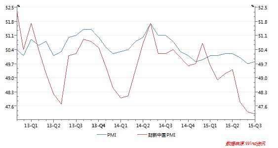 9月份,國內(nèi)宏觀經(jīng)濟形勢依然未見大的起色,主要表現(xiàn)在國內(nèi)經(jīng)濟數(shù)據(jù)仍較為疲弱。繼替代匯豐銀行取得Markit公司編制的PMI冠名權(quán)的財新傳媒集團9月24日發(fā)布的最新數(shù)據(jù)顯示,9月財新中國制造業(yè)采購經(jīng)理人指數(shù)(PMI)初值降至47.2,低于上月終值0.1個百分點,跌至2009年3月以來新低。這是該數(shù)據(jù)連續(xù)第二個月下跌,也是連續(xù)七個月低于50榮枯線,表明制造業(yè)陷入萎縮區(qū)間。分項來看,9月新訂單和新出口訂單指數(shù)均較上月下滑,顯示內(nèi)外需求疲軟。受此影響,企業(yè)采購數(shù)量繼續(xù)下降。作為衡量制造業(yè)景氣程度的重要先行指標(biāo),財新中國制造業(yè)PMI初值持續(xù)下跌表明經(jīng)濟“穩(wěn)中有難”,下行壓力加大。近期其他經(jīng)濟數(shù)據(jù)也反映出這一趨勢。據(jù)官方數(shù)據(jù),2015年1-8月固定資產(chǎn)投資同比增速比1-7月回落0.3個百分點;截至8月,工業(yè)生產(chǎn)者出廠價格指數(shù)(PPI)已連續(xù)42個月同比下降;工業(yè)、消費同比增速雖有回暖,但回升基礎(chǔ)并不牢固。