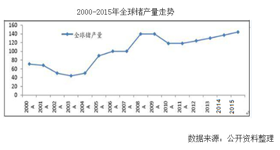 據(jù)統(tǒng)計,中國鍺年產量從2008年以來一直保持在100噸左右的水平。不過,在中國對稀有金屬的整合之下,未來幾年鍺的產量將會逐步下降,預計控制在120噸左右。