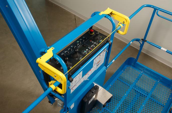 新型Genie Lift Guard操作者警報(bào)系統(tǒng)在高空作業(yè)平臺(tái)控制面板上方配備有感應(yīng)線纜。當(dāng)線纜受壓時(shí)會(huì)斷開(kāi)連接并觸發(fā)報(bào)警系統(tǒng)。報(bào)警系統(tǒng)一旦被觸發(fā),設(shè)備所有升降和行駛功能將停止運(yùn)轉(zhuǎn),以防平臺(tái)再次移位。同時(shí)報(bào)警器會(huì)發(fā)出警報(bào),信號(hào)燈閃爍,向設(shè)備附近的人員發(fā)出通知可能有作業(yè)人員需要援助。