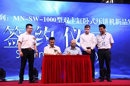 江蘇大隆凱科技有限公司總經(jīng)理胡和榮表示,在“全心全意為客戶服務(wù)、為客戶創(chuàng)造價(jià)值”的理念引領(lǐng)下,該公司研發(fā)部門投入數(shù)千萬(wàn)資金十年磨一劍,終于研發(fā)成功了“蠻?!毕盗蠱N-SW-1000型雙主缸臥式壓餅機(jī)高端新品。