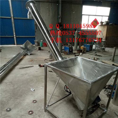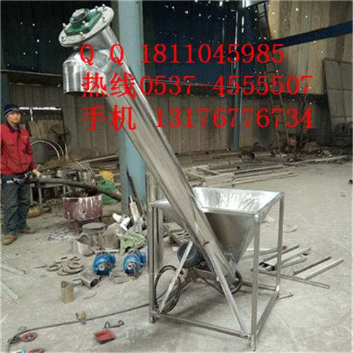 螺旋提升機產(chǎn)品概述 該機適用于食品、醫(yī)藥、化工、塑料等行業(yè)的粉粒狀物料的輸送??梢耘c我司包裝機配套實現(xiàn)料位跟蹤自動供料,也可單獨在其它場合使用。除電機、軸承、機架外其余為不銹鋼制成。可隨意移動,在水平、傾斜、垂直等位置均能連續(xù)輸送,它具有良好的密封性,無粉塵泄漏??芍苯优c其配套的設(shè)備連接固定,不需要地基基礎(chǔ),充分利用廠房空間技術(shù)特點1、本機屬非基礎(chǔ)固定式,由驅(qū)動電機、減速箱、外殼管、螺旋體依次相連,結(jié)合為整體。2、進出料口可根據(jù)工作現(xiàn)場情況制成所需要的傾斜角度,并與其它配套設(shè)備連接固定。3、該機采用盤形鋼帶軋制而成的整體連接葉片,其螺旋面精度高,內(nèi)孔外徑螺旋距尺寸準(zhǔn)確。4、可以加裝感應(yīng)裝置,自動控制配套設(shè)備的料箱的料位,提升自動化水平。5外形尺寸:具體根據(jù)工程需要來確定。 為能夠便于清理殘料設(shè)計成:螺旋可以反轉(zhuǎn)排料、料管下端有閘門放料、整條螺旋無需工具即可方便卸、裝、清洗等。
