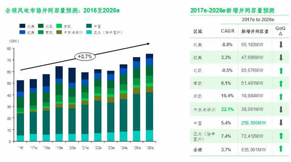 2017年二季度風(fēng)電市場(chǎng)展望:全球風(fēng)電新增容量十年預(yù)測(cè)上調(diào)10.8GW,未來(lái)五年內(nèi)將實(shí)現(xiàn)上調(diào)預(yù)測(cè)容量的60%。
