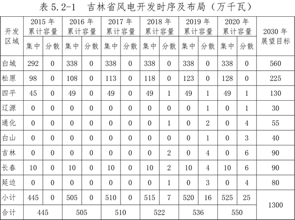 “十三五”期間新增裝機(jī)規(guī)模105萬千瓦,吉林省風(fēng)電項目開發(fā)時序及布局見表5.2-1。