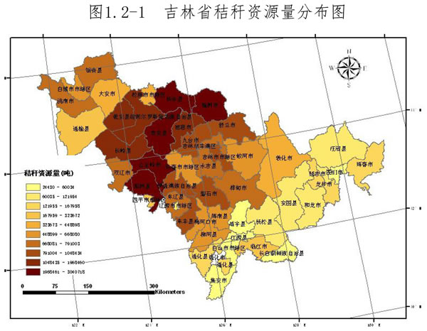 綜上,吉林省生物質(zhì)資源總量見表1.2-1。