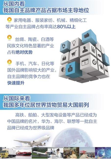 “從國內(nèi)看,我國自主品牌產(chǎn)品已具有較強的競爭力,占據(jù)市場主導(dǎo)地位?!睋?jù)陳因介紹,在消費品領(lǐng)域,家用電器、服裝家紡等產(chǎn)業(yè)自主品牌占有率高達80%以上;絲綢、陶瓷、白酒等民族文化特色顯著的產(chǎn)業(yè)占有絕對市場優(yōu)勢;在手機、汽車、日化等國外品牌影響較大的產(chǎn)業(yè),自主品牌競爭力也在快速提升。同時,在工業(yè)品領(lǐng)域,主要產(chǎn)品的競爭力不斷提高。比如,機械、精細化工等產(chǎn)品市場占有率也達到80%以上。