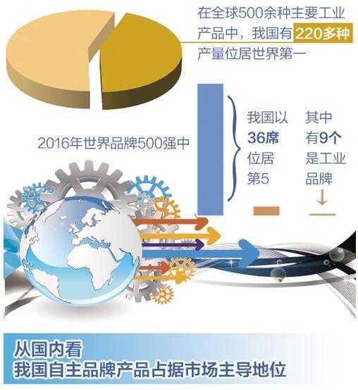 在聯(lián)合國工業(yè)發(fā)展組織2016年的報告中,中國工業(yè)競爭力排名第5位;在世界品牌實驗室發(fā)布的2016年世界品牌500強榜單中,我國以36席位居第5,其中有9個是工業(yè)品牌。兩個“第5位”說明,中國制造“從大到強”依然任重道遠,迫切需要創(chuàng)建以質(zhì)量品牌為標志的競爭新優(yōu)勢。