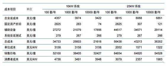 固定式燃料電池系統(tǒng)成本顯著高于車用燃料電池,DOE為小型CHP系統(tǒng)燃料電池設(shè)定的成本目標(biāo)是到2020年實(shí)現(xiàn)1500美元/kW。而基于2013年的水平,只需要通過擴(kuò)大生產(chǎn)規(guī)模即可能將成本控制到2000美元/kW以下,根據(jù)估算,如果能夠?qū)⒅圃炜刂圃?000美元/kW以下,固定式燃料電池就足以在沒有任何補(bǔ)貼的情況下獲得推廣(熱電聯(lián)供系統(tǒng)和輔助電源的推廣成本區(qū)間分別在450-650美元和500-700美元/kW)。