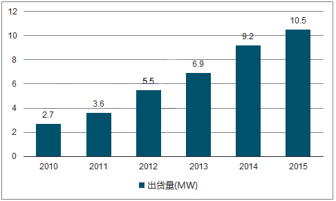 2015年我國燃料電池行業(yè)出貨量約10.5MW,同比2014年的9.2MW增長了14.13%,近幾年我國燃料電池行業(yè)出貨量情況如下圖所示: