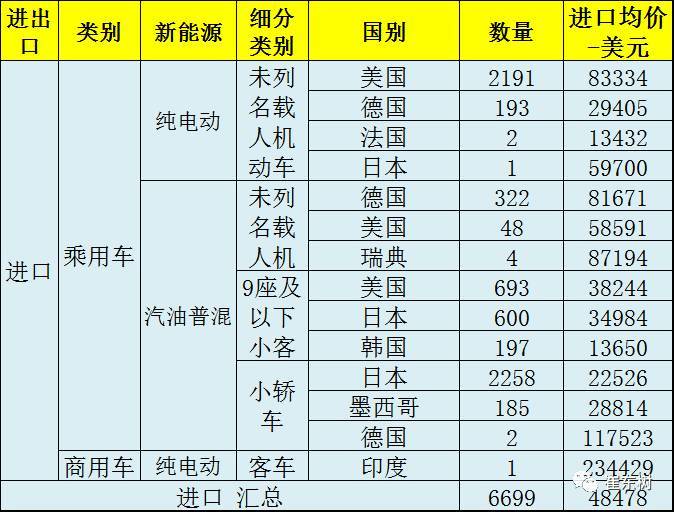 從均價看,新能源車的均價是7.5萬美元,與特斯拉的進(jìn)口價格相近,說明其為主體。而客車的進(jìn)口僅有3臺,也是沒啥意義的。