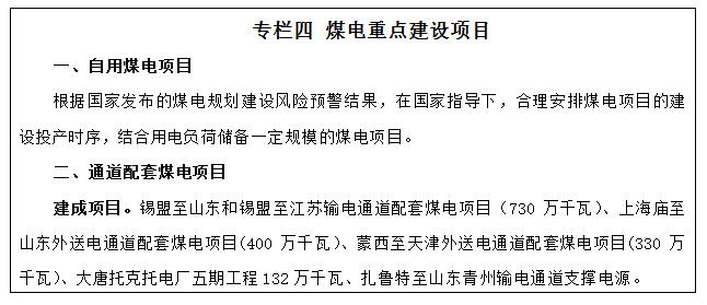 穩(wěn)步推進煤電基地建設。綜合考慮國家能源發(fā)展戰(zhàn)略、受端電力市場需求等因素,合理安排煤電基地建設時序。重點圍繞鄂爾多斯、錫林郭勒、呼倫貝爾三個以電力外送為主的大型煤電基地,積極推進高參數(shù)、大容量先進燃煤發(fā)電機組建設,新建燃煤發(fā)電項目原則上采用60萬千瓦及以上超超臨界機組。鄂爾多斯煤電基地重點推進上海廟-山東、蒙西-天津南等輸電通道配套煤電建設;錫林郭勒煤電基地重點推進錫盟-山東、錫盟-江蘇等輸電通道配套煤電建設;呼倫貝爾煤電基地積極啟動呼倫貝爾外送輸電通道配套煤電建設。