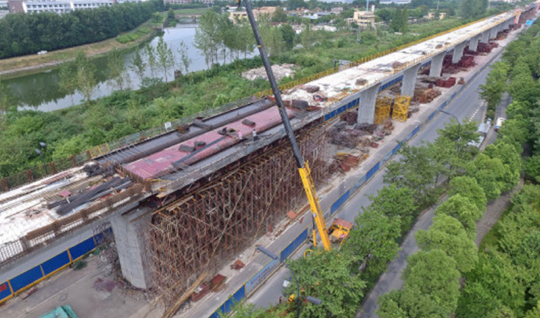 施工中的杭州至臨安城際鐵路試驗(yàn)段工地。