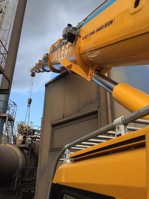 最極限的一次吊裝,在距離工廠監(jiān)控室屋頂上方不到5公分成功完成,這也是徐工臂架系統(tǒng)的穩(wěn)定性和微動(dòng)性最好的證明!