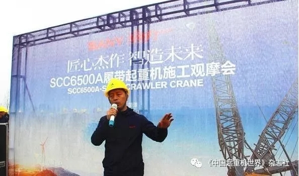 三一SCC6500A履帶式起重機(jī)項(xiàng)目經(jīng)理焦占芳現(xiàn)場講解產(chǎn)品性能及應(yīng)用工況