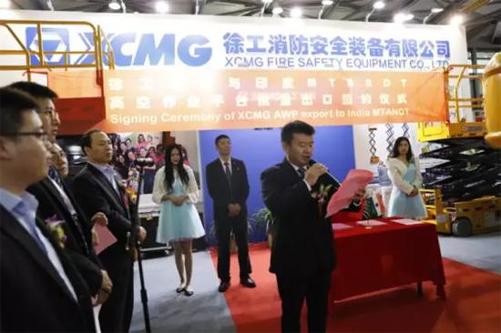 11月1日9時58分,徐工集團與印度MTANDT公司高空作業(yè)平臺批量出口簽約儀式在上海新國際博覽中心隆重舉行。印度MTANDT公司一次性采購徐工高空作業(yè)平臺系列設(shè)備210臺,總價值達700萬美金。