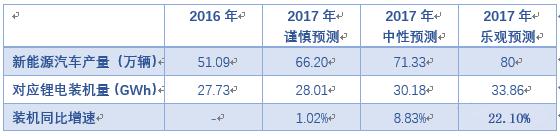 真鋰研究當時對今年走勢的看法:①為雙積分辦法預(yù)熱,電動乘用車會有較大發(fā)展;②電動客車前兩年的高增長透支了市場,今年一定會回落;③電動物流車缺乏整車國家標準,難有大發(fā)展。據(jù)此,我們預(yù)計今年的新能源汽車產(chǎn)量66.2萬輛,對應(yīng)的鋰電裝機28.01GWh。