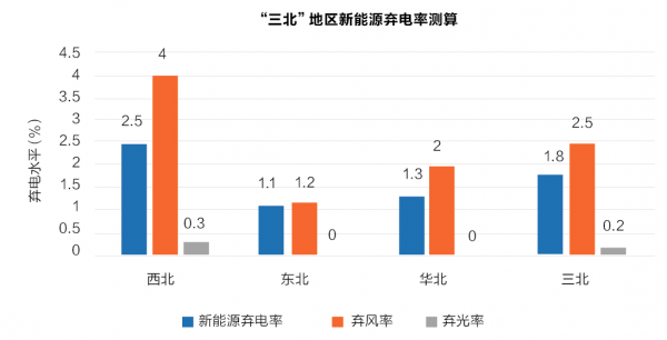 2020年,“三北”地區(qū)棄風(fēng)棄光電量70億千瓦時(shí),棄電率2%。其中,棄風(fēng)電量68億千瓦時(shí),棄風(fēng)率3%;棄光電量2億千瓦時(shí),棄光率1%。西北、東北、華北地區(qū)棄風(fēng)棄光電量分別為40億千瓦時(shí)、7億千瓦時(shí)、23億千瓦時(shí),棄電率均在5%以內(nèi)。通過多措并舉、綜合施策,2020年有望實(shí)現(xiàn)新能源棄電水平控制在5%以內(nèi)的目標(biāo)。