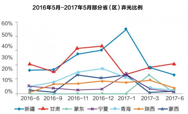 陜西今年開始棄光增加明顯,棄光率達(dá)到15.5%,成為新的限電重災(zāi)區(qū)。部分中東南部的省份從零棄光也開始出現(xiàn)了棄光的現(xiàn)象,包括山東、貴州、陜西、河北、湖北等棄光問題對(duì)行業(yè)發(fā)展影響比較大。