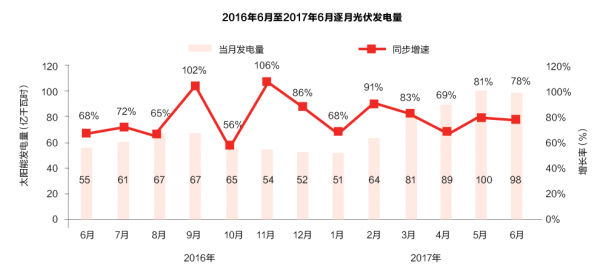 國(guó)家電網(wǎng)能源研究院新能源研究所所長(zhǎng)李瓊慧分析,從光伏發(fā)電運(yùn)行消納情況看,利用小時(shí)數(shù)總體上升,發(fā)電量增速大,同比增長(zhǎng)75%。不過李瓊慧表示,增長(zhǎng)速度比較快也是因?yàn)樗幕鶖?shù)比較小,并不意味著它的量有多大,光伏累計(jì)發(fā)電量總基數(shù)還是比較小的。