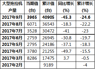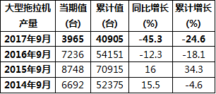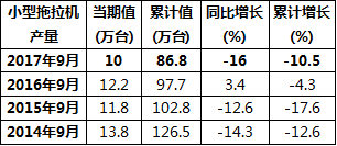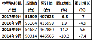 9月份大拖產量銳減 中拖繼續(xù)攀升 小拖略有上升 —— 文章正文2017-11-07