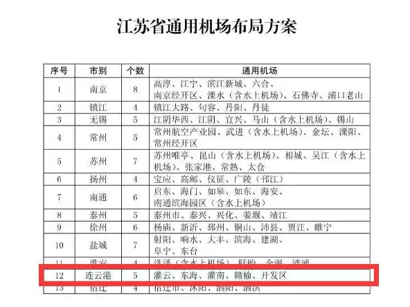 連云港灌云、東海、灌南等地將建設(shè)5個(gè)通用機(jī)場(chǎng) —— 文章正文2017-11-17