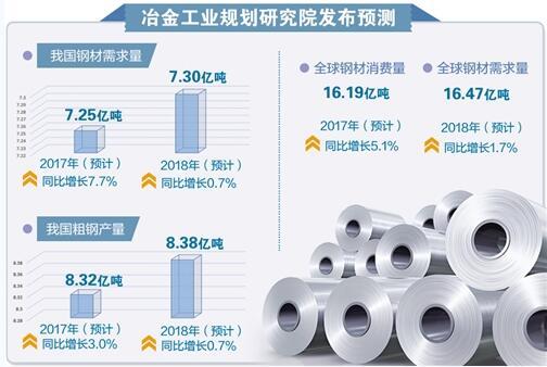 冶金工業(yè)規(guī)劃研究院院長李新創(chuàng)認(rèn)為,2018年,我國經(jīng)濟(jì)發(fā)展將保持平穩(wěn)較快增長態(tài)勢,主要下游行業(yè)鋼材需求仍將持續(xù)增長,但增速放緩,2018年鋼材需求總量預(yù)計(jì)會(huì)小幅增長。