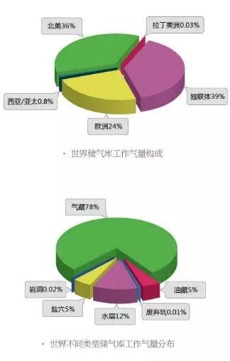 全球儲(chǔ)氣庫工作氣量及類型(數(shù)據(jù)截至2010年)