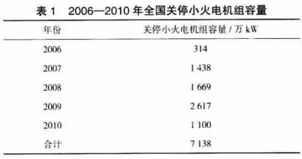 ●“十一五”(2006--2010年)期間,國家提倡清潔高效地有序發(fā)展火電,2006--2010年,全國累計關停小火電7138萬kW,其具體情況如下表1所示: