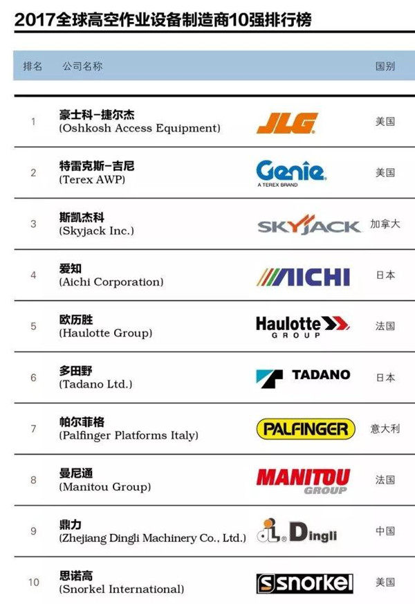 近期,根據(jù)中國(guó)各高空作業(yè)設(shè)備制造商經(jīng)營(yíng)數(shù)據(jù),全球高空作業(yè)設(shè)備峰會(huì)組委會(huì)聯(lián)合《中國(guó)工程機(jī)械》雜志共同重磅發(fā)布了中國(guó)高空作業(yè)設(shè)備制造商5強(qiáng)榜單和全球高空作業(yè)設(shè)備制造商10強(qiáng)排行榜。