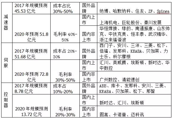 表1三大核心零部件規(guī)模、成本及品牌企業(yè)的對(duì)比
