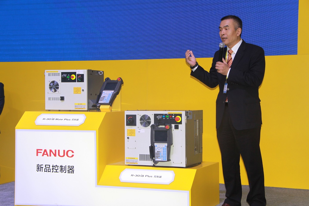 2017上海機(jī)器人展上,上海發(fā)那科機(jī)器人有限公司總經(jīng)理錢暉介紹新品R-30iBPlus機(jī)器人控制器