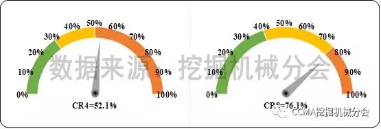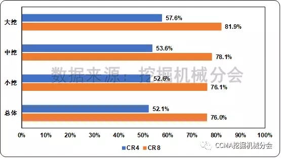 圖8 2017年國(guó)內(nèi)挖掘機(jī)械市場(chǎng)不同機(jī)型市場(chǎng)集中度