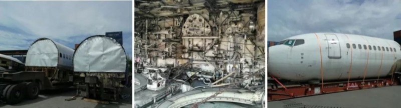 貨代公司負(fù)責(zé)人介紹說(shuō),此架波音737-300是當(dāng)?shù)睾娇展緢?bào)廢產(chǎn)品,被轉(zhuǎn)賣后的主要用途是培訓(xùn)或主題餐廳等。飛機(jī)共拆分為機(jī)頭、機(jī)身、機(jī)尾和機(jī)翼四部分,其中機(jī)尾部分尺寸達(dá)到14.4m*3.72*3.5m,機(jī)翼部分尺寸15.6m*4.5m*3m。