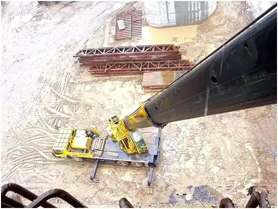 超大筒徑的吊臂。臂長(zhǎng)34.2m,22m幅度 ,吊重2.8t。