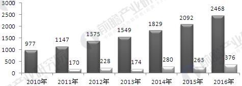 2010-2016年城軌交通車站規(guī)模趨勢圖(單位:個)