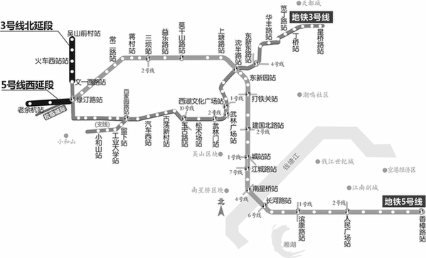 杭州地鐵三期新增機(jī)場軌道快線、3號線北延、5號線西延