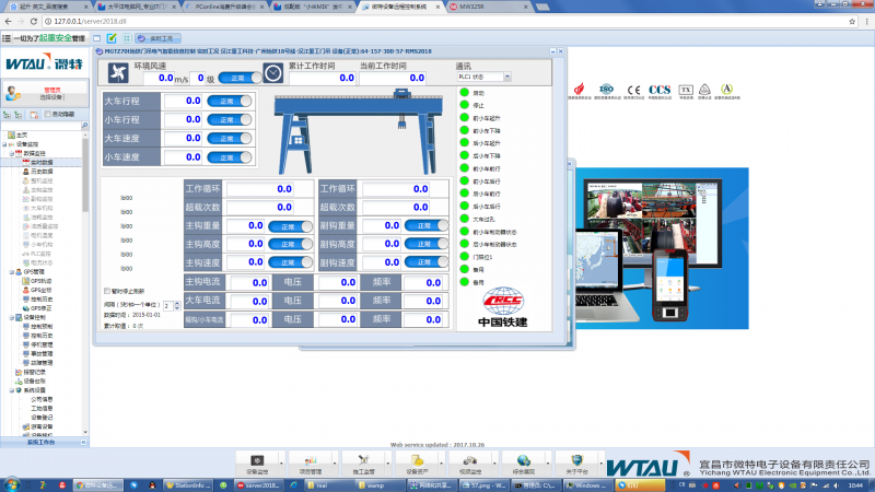 MGTZ70t地鐵門吊智能信息控制系統(tǒng),包含門吊數(shù)據(jù)監(jiān)控和視頻監(jiān)控兩部分。實現(xiàn)門吊使用過程中全方位的數(shù)據(jù)監(jiān)控和關鍵部位的視頻圖像監(jiān)控以及以上數(shù)據(jù)和圖像的存儲等功能??蓪崿F(xiàn)遠程PC電腦實時遠程查詢監(jiān)控,數(shù)據(jù)回放、曲線擬合等功能;可實現(xiàn)手機APP遠程實時查詢設備狀態(tài),數(shù)據(jù)抽取查詢等功能。
