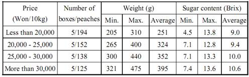 韓國鮮桃糖度與市場(chǎng)價(jià)格