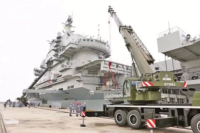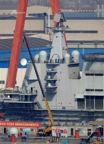 徐工起重機助力001A航母通訊設(shè)備安裝