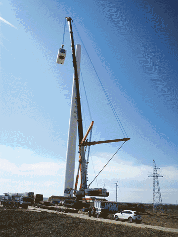 ▲中聯(lián)重科QAY2000在陜西定邊風(fēng)電施工現(xiàn)場