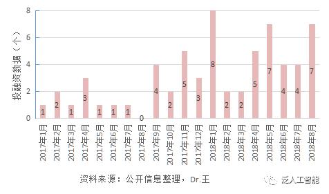 從圖2,我們可以看到2017年以來機(jī)器人行業(yè)公司投融資數(shù)量月度變化趨勢(shì)。非常明顯,機(jī)器人行業(yè)從2017年初以來,得到風(fēng)險(xiǎn)投資支持的創(chuàng)業(yè)公司數(shù)量越來越多,形勢(shì)不錯(cuò)。