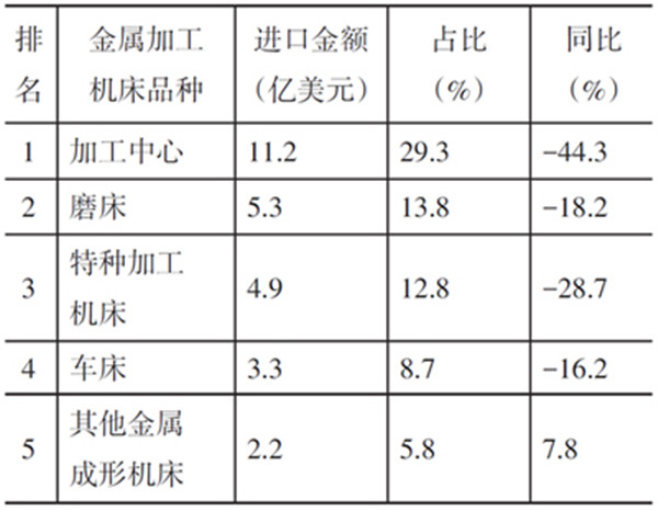 表3 進(jìn)口金額排前5名的金屬加工機(jī)床品種