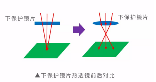 功率越高、加工高反材料,光學(xué)元件受熱膨脹越迅速,熱透鏡越明顯;產(chǎn)生熱透鏡效應(yīng)時,光學(xué)元件受熱膨脹,出現(xiàn)聚焦能力變強(qiáng),聚焦光斑尺寸變小,焦距和焦深變短現(xiàn)象。