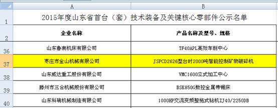 10月8日,山東省經(jīng)濟(jì)和信息化委員會(huì)公布了山東省內(nèi)獲得全國(guó)2015年度重點(diǎn)領(lǐng)域首臺(tái)(套)技術(shù)裝備和關(guān)鍵核心零部件項(xiàng)目的企業(yè)名單,棗莊市金山機(jī)械有限公司名列其中,金山機(jī)械JSPCD型臺(tái)時(shí)2000噸智能控制礦物破碎機(jī)經(jīng)過(guò)嚴(yán)格的檢驗(yàn),通過(guò)了重重審核,最終獲得“2015年度國(guó)內(nèi)首臺(tái)(套)技術(shù)裝備及關(guān)鍵核心零部件”殊榮。